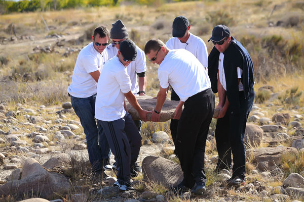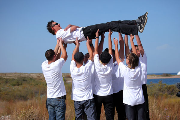 Pendant les pauses les nouveaux maçons ont fait avec le psychologue quelques exercices pour développer la cohésion du groupe, la confiance en soi et l’assurance.